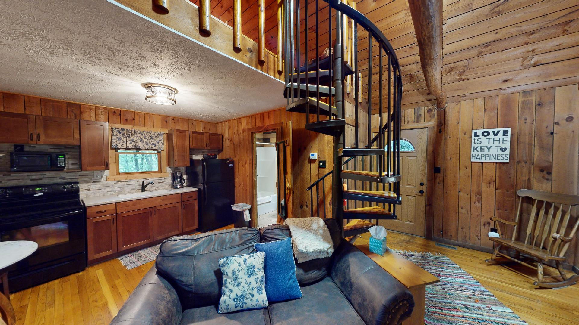 A rustic, charming cabin located in the heart of the Hocking Hills. A cozy Loft just for the 2 of you. The perfect place for that special occasion. Whether you are celebrating your wedding anniversary or need a break from the daily routine, this cabin is the perfect place for a couple.